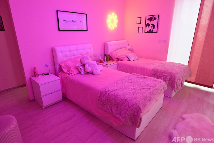 床面積500平方メートルのメゾネットは色鮮やかに塗られ、出窓と大きなテラス、そしてジェットバスが備わっている。ティックトックに投稿する短編動画の背景として完璧だ。