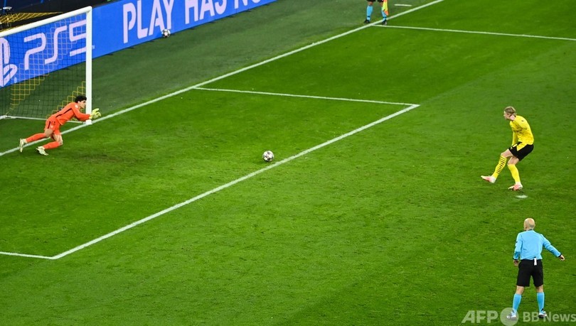 ドルトムントが3-2で勝利した第1戦でも2ゴールを記録していたハーランドは、本拠地ジグナル・イドゥナ・パルク(Signal Iduna Park)で前半に先制点を奪うと、後半にも蹴り直しになったPKを成功させてチームのリードを広げた。