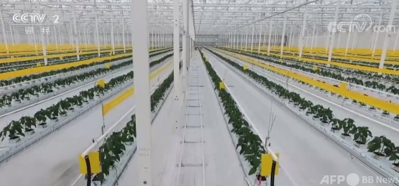 約1カ月後、この野菜基地は「豊作シーズン」を迎えます。キュウリのほかにトマトとピーマンが収穫期に入り、毎日の野菜の生産量は20~30トンになります。(c)CGTN Japanese/AFPBB News