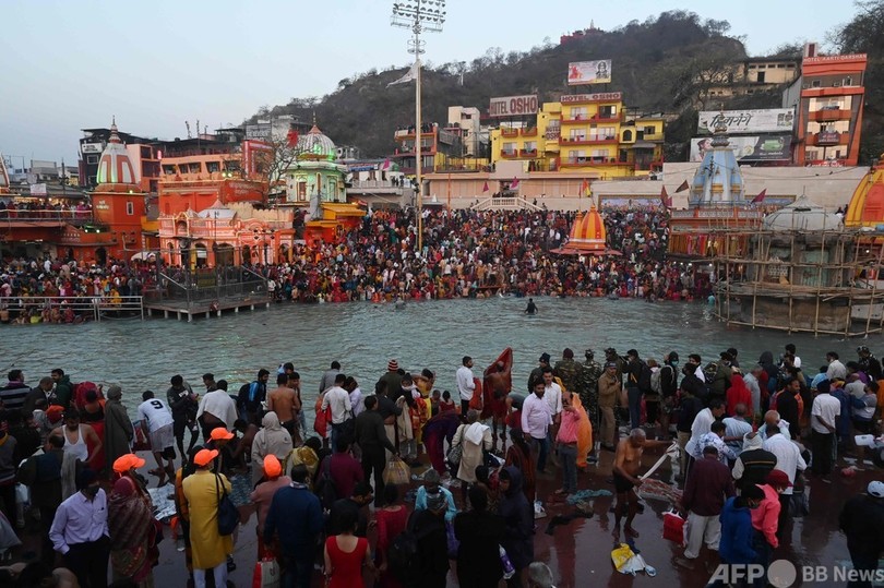 【3月11日 AFP】インド北部ウッタラカンド(Uttarakhand)州ハリドワール(Haridwar)で11日、新型コロナウイルスの脅威は意に介さず、数十万人のヒンズー教巡礼者がガンジス(Ganges)川に押し寄せ、沐浴(もくよく)をした。