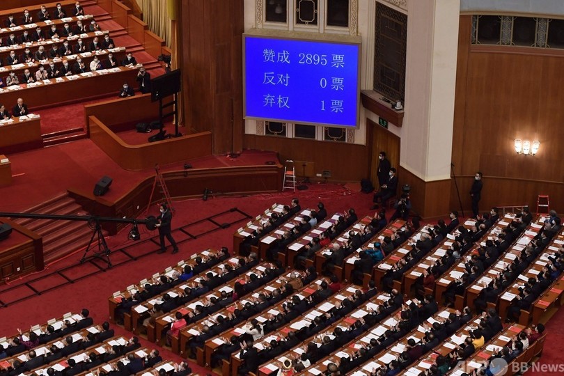 昨年の全人代では、香港国家安全維持法(国安法)が成立。11日の投票では、代表2896人のうち1人だけが棄権した。今回の決定により、香港の民主派運動がまた一歩終わりに近づくとの批判も出ている。