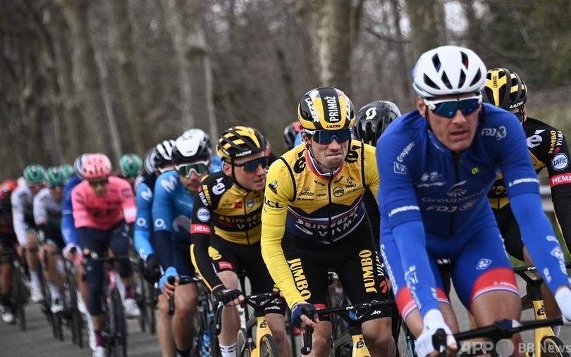 チーム・ユンボ・ビスマ(Team Jumbo Visma)のプリモシュ・ログリッチ(Primoz Roglic、スロベニア)は落車があったが、総合首位をキープしている。(c)AFP