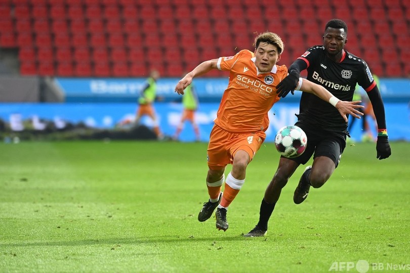 【3月15日 AFP】20-21ドイツ・ブンデスリーガ1部は14日、第25節の試合が行われ、アルミニア・ビーレフェルト(Arminia Bielefeld)は堂安律(Ritsu Doan)と奥川雅也(Masaya Okugawa)の日本人コンビがそれぞれ得点を挙げ、バイヤー・レバークーゼン(Bayer Leverkusen)を2-1で下した。
