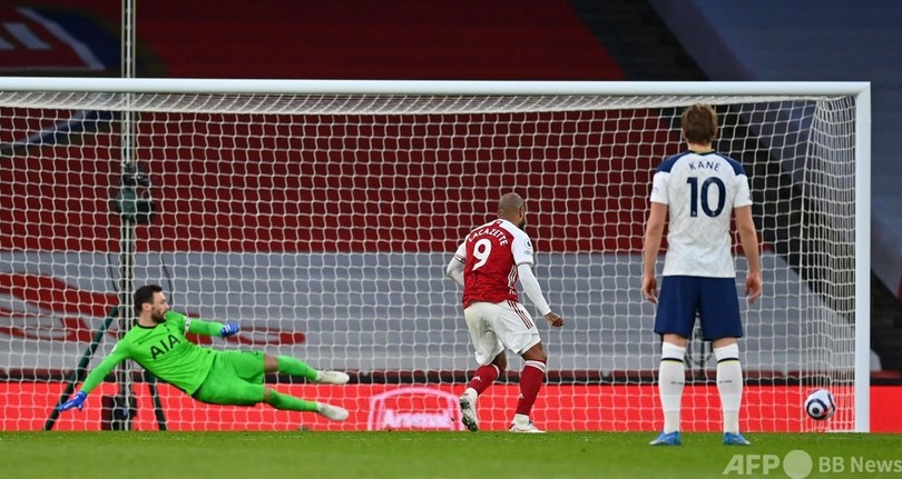 ラカゼットはフランス代表でチームメートのGKウーゴ・ロリス(Hugo Lloris)の逆を突くシュートを決め、アーセナルがトップ4入りに向けたわずかな望みをつなぐ勝利を手にした。