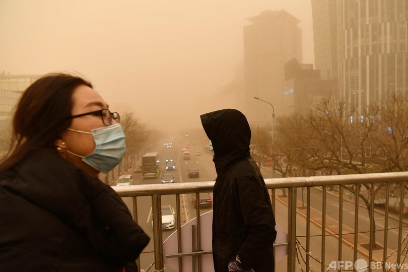 【3月15日 AFP】中国の北京は15日、厚い黄砂に覆われ、大気汚染指数が「危険」に引き上げられた。