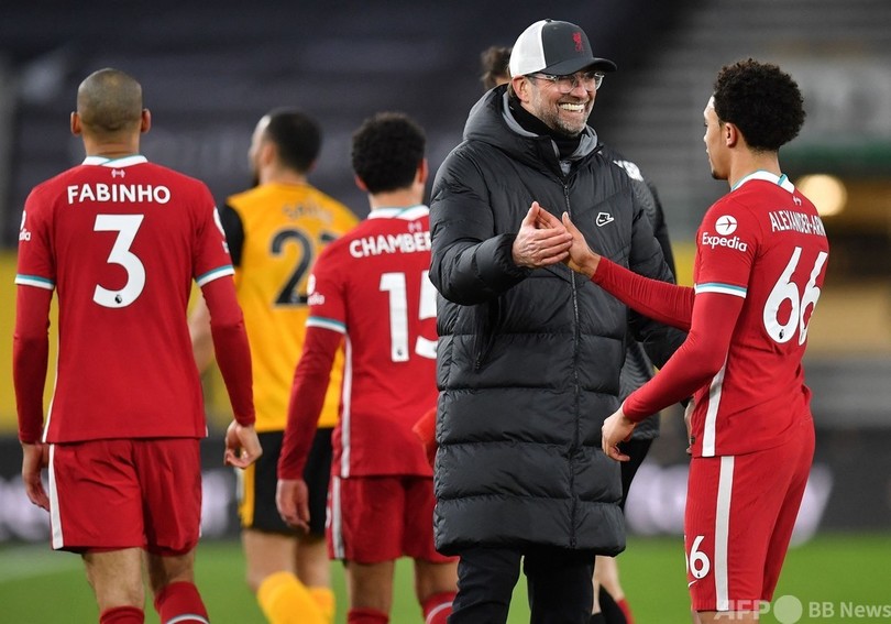 【3月16日 AFP】20-21イングランド・プレミアリーグは15日、第28節の試合が行われ、リバプール(Liverpool FC)はけがから復帰したジオゴ・ジョタ(Diogo Jota)が決勝点をマークし、アウェーでウォルバーハンプトン・ワンダラーズ(Wolverhampton Wanderers)に1-0で勝利した。リバプールを率いるユルゲン・クロップ(Juergen Klopp)監督は、「泥臭い」形で勝ち点3を獲得しても問題ないと述べた。
