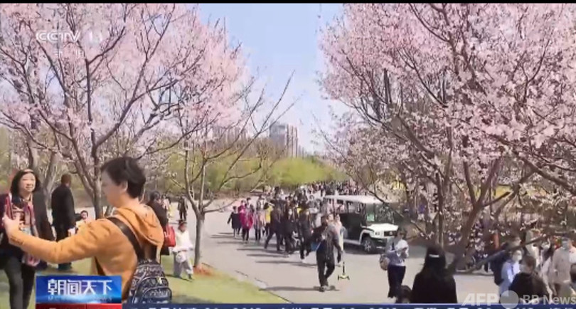 上海の顧村公園で開催中の桜祭りは4月12日まで続くということです。(c)CGTN Japanese/AFPBB News