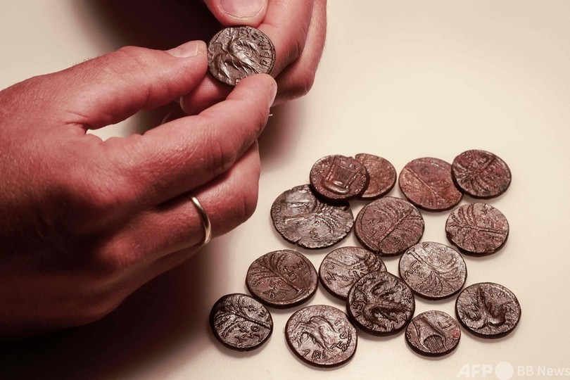 今回の発掘ではその他、貴重な硬貨の数々や、6000年前の子どもの遺骨、放射性炭素年代測定で1万500年前のものと判定された編みかごが見つかった。同庁はこのかごについて、「世界最古とみられる」としている。(c)AFP/Ben Simon