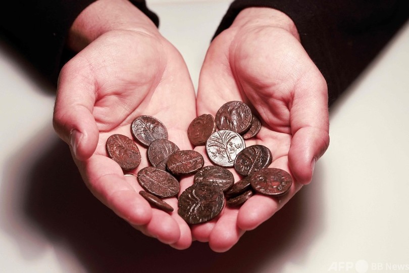 今回の発掘ではその他、貴重な硬貨の数々や、6000年前の子どもの遺骨、放射性炭素年代測定で1万500年前のものと判定された編みかごが見つかった。同庁はこのかごについて、「世界最古とみられる」としている。(c)AFP/Ben Simon