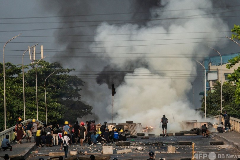 ミャンマーでは、治安部隊が国際社会の求めに応じず、反クーデターデモの参加者に対して殺傷力のある武器を用いた弾圧をエスカレートさせている。(c)AFP