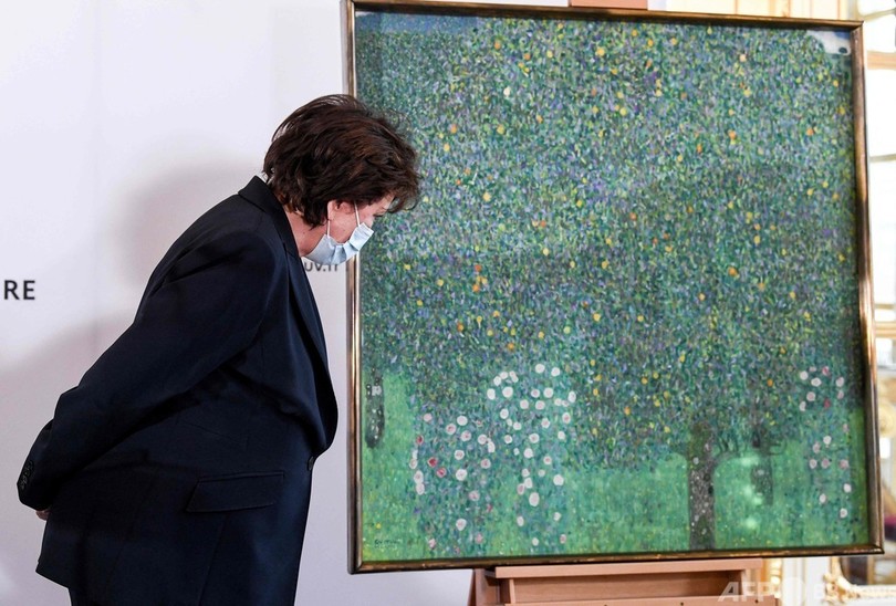 「樹下のバラ(Rose Bushes Under Trees)」と題されたこの絵画は、オーストリア人のクリムトが1904~05年ごろ制作。ロズリーヌ・バシュロ(Roselyne Bachelot)文化相は15日、この作品をホロコースト(Holocaust、ユダヤ人大量虐殺)の犠牲者ノラ・シュティアスニー(Nora Stiasny)さんの親族に返還する方針を明らかにした。