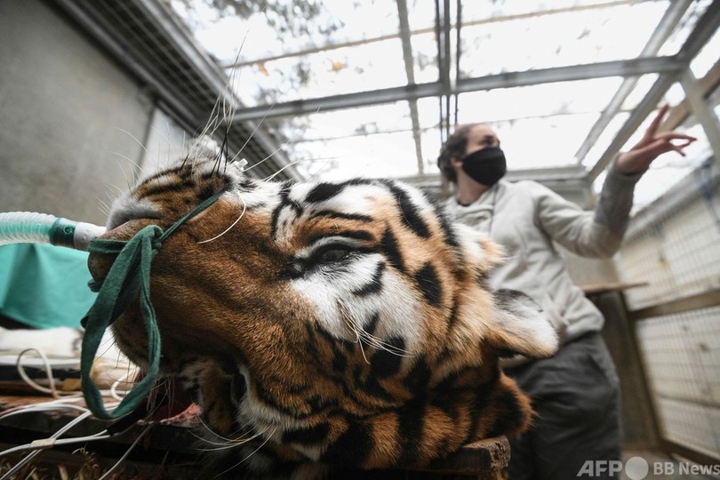 ニュース ライフ お口開けて~! シベリアトラに歯科手術、フランス 2021年3月18日 11:56 発信地:ミュルーズ/フランス [ フランス ヨーロッパ ] このニュースをシェア ‹ › ❮ 10/17 ❯ フランス東部ミュルーズにあるミュルーズ動植物公園で、牙の治療のため手術を受けるシベリアトラのバイカル(2021年3月17日撮影)。(c)SEBASTIEN BOZON / AFP 画像作成中 ! 【3月18日 AFP】フランス東部ミュルーズ(Mulhouse)にある動植物公園で17日、14歳のシベリアトラ(アムールトラ)のバイカル(Baikal)に歯科手術が行われた。7年前に折れた牙の治療痕が化膿(かのう)してしまったためという。バイカルはX線検査の後、外科手術を受けた。(c)AFP ライフ 一覧へ> メディア・報道関係・法人の方向け 写真・動画 購入のお問合せ>