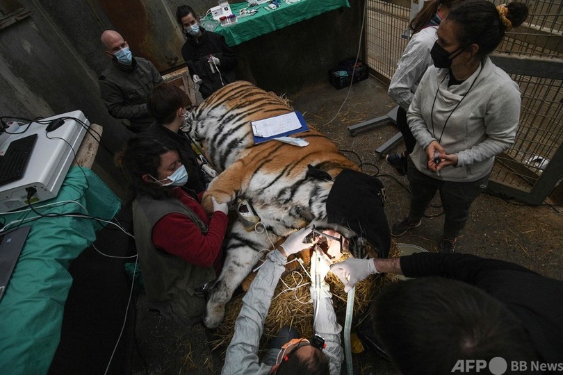 ニュース ライフ お口開けて~! シベリアトラに歯科手術、フランス 2021年3月18日 11:56 発信地:ミュルーズ/フランス [ フランス ヨーロッパ ] このニュースをシェア ‹ › ❮ 9/17 ❯ フランス東部ミュルーズにあるミュルーズ動植物公園で、牙の治療のため手術を受けるシベリアトラのバイカル(2021年3月17日撮影)。(c)SEBASTIEN BOZON / AFP 画像作成中 ! 【3月18日 AFP】フランス東部ミュルーズ(Mulhouse)にある動植物公園で17日、14歳のシベリアトラ(アムールトラ)のバイカル(Baikal)に歯科手術が行われた。7年前に折れた牙の治療痕が化膿(かのう)してしまったためという。バイカルはX線検査の後、外科手術を受けた。(c)AFP ライフ 一覧へ> メディア・報道関係・法人の方向け 写真・動画 購入のお問合せ>