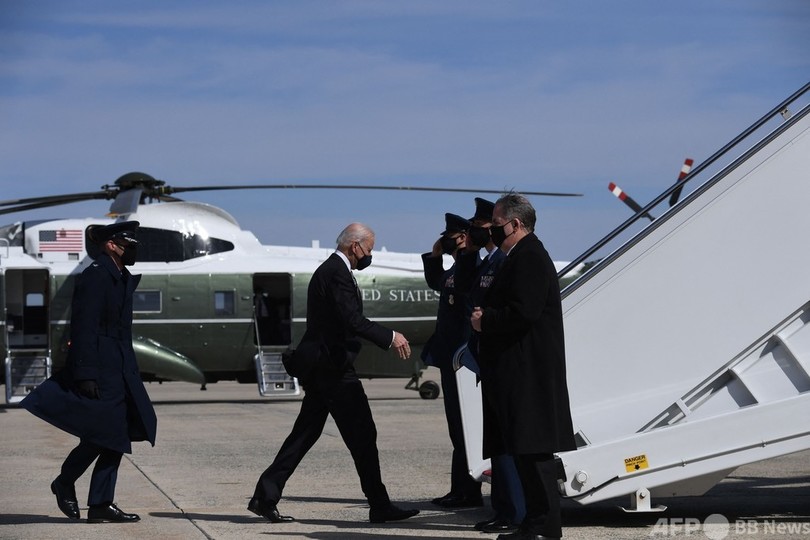 バイデン氏はジョージア州アトランタ(Atlanta)で起きたマッサージ店連続銃撃事件を受け、アジア系住民の代表者らとの面会のため、首都ワシントンからアトランタに向かうところだった。