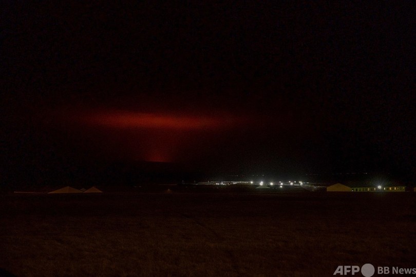 【3月20日 AFP】(写真追加)アイスランド南西部レイキャネース半島(Reykjanes Peninsula)で19日夜、火山が噴火し、夜空の雲が赤く照らされた。アイスランド気象庁(IMO)が明らかにした。