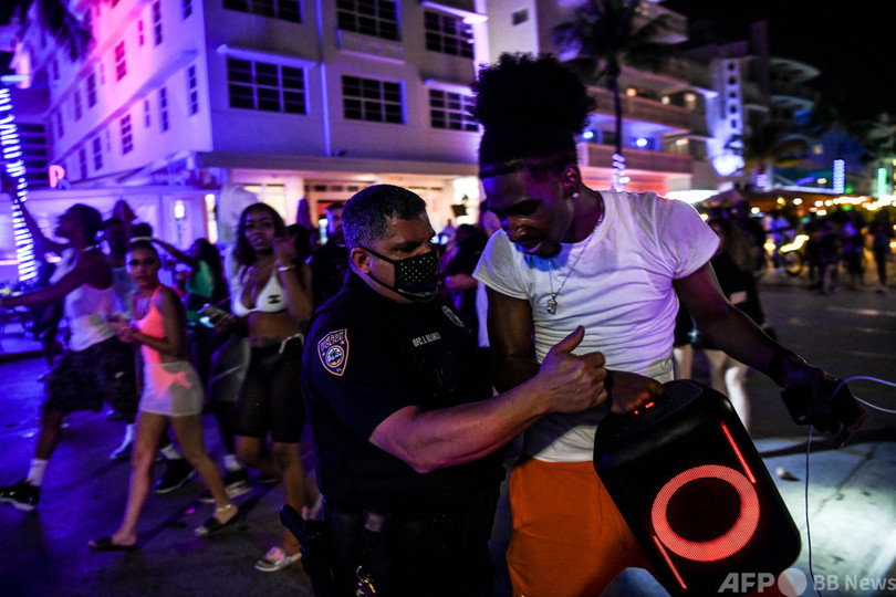 春休みのマイアミビーチで人々が浮かれ騒ぐ光景は珍しくないものの、今年は米市民の約13%がワクチンを接種したこともあって特にお祭りムードが強く、感染拡大が抑えられているという錯覚が広がっている。
