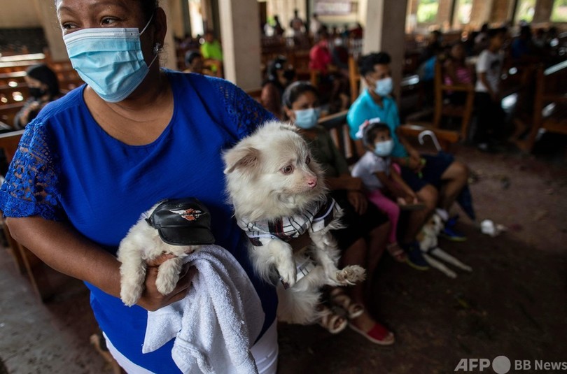 【3月23日 AFP】ニカラグア首都マナグアの約35キロ南に位置するマサヤ(Masaya)のモニンボ(Monimbo)地区で21日、聖ラザロ(Saint Lazarus)を記念するミサが行われ、犬が祝福を受けた。