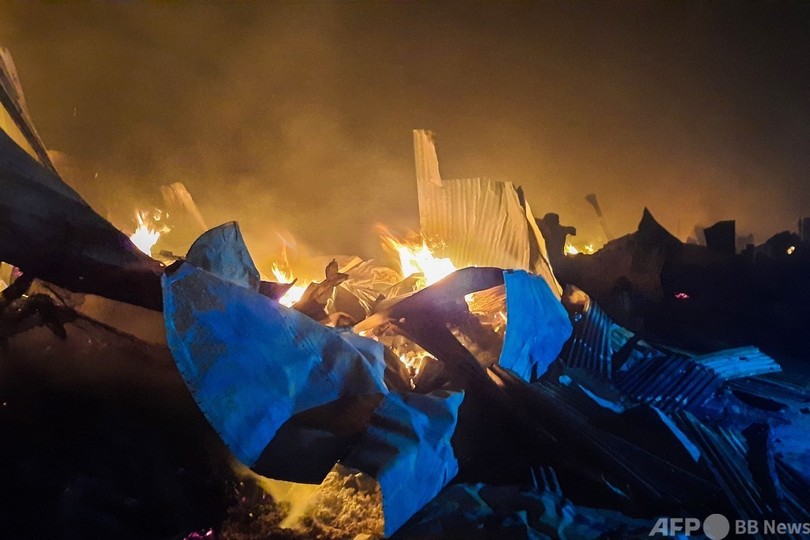 現場は、隣国ミャンマーから軍の弾圧を逃れてきた100万人近いロヒンギャが暮らす世界最大の難民キャンプで、22日に出火した。原因はまだ分かっていない。(c)AFP