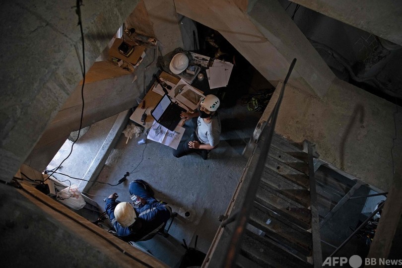 今年10月に建立90周年を迎えるのに合わせ、現在キリスト像の修復作業が行われている。(c)AFP