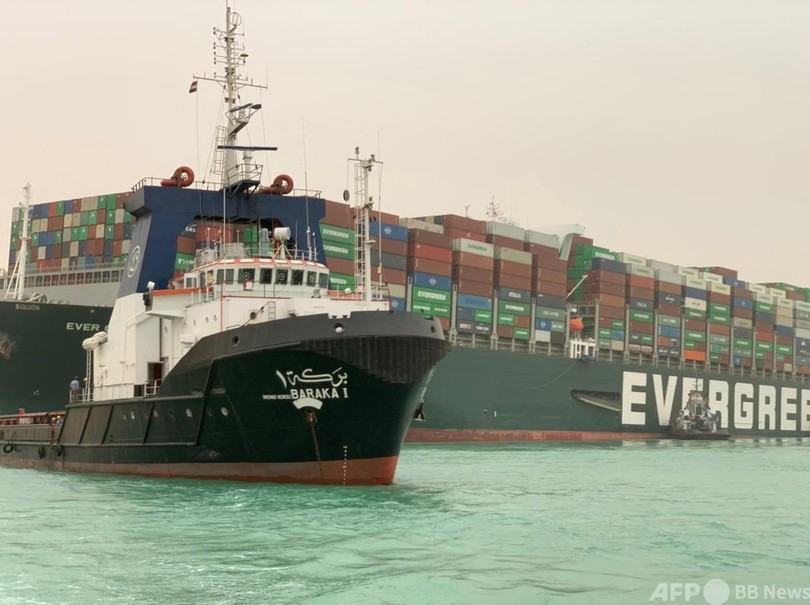 【3月25日 AFP】(更新)エジプトのスエズ運河(Suez Canal)で座礁した巨大コンテナ船を所有する日本の正栄汽船(Shoei Kisen)は25日、離礁作業は「困難を極めている」と発表した。
