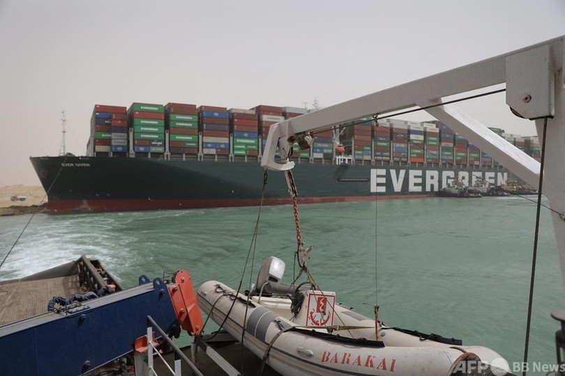 【3月26日 AFP】エジプトのスエズ運河(Suez Canal)で巨大コンテナ船が座礁し、運河が遮断されている問題で、離礁作業に当たるオランダ企業トップは、復旧には「数日または数週間」かかる可能性があるとの見解を示した。