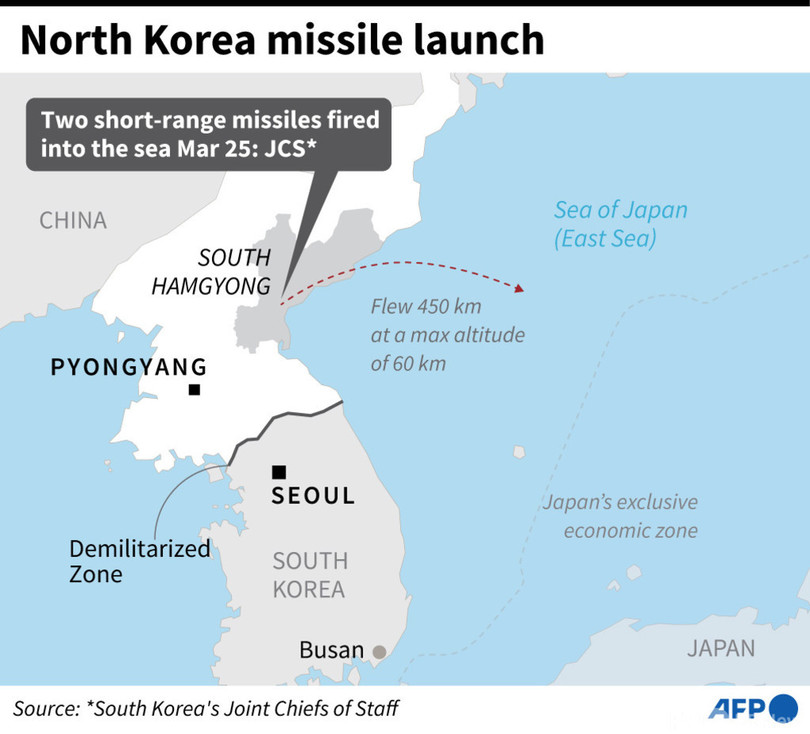 【3月26日 AFP】(更新)北朝鮮の国営メディアは26日、同国が前日に発射した飛翔(ひしょう)体は固形燃料を使用した新型の「戦術誘導弾」だったと発表した。