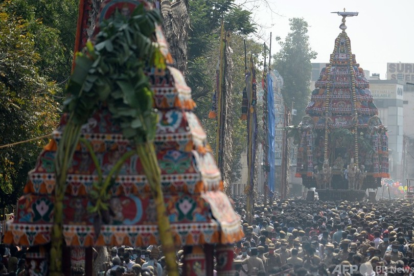 年に一度の山車祭り、大にぎわい インド・チェンナイ