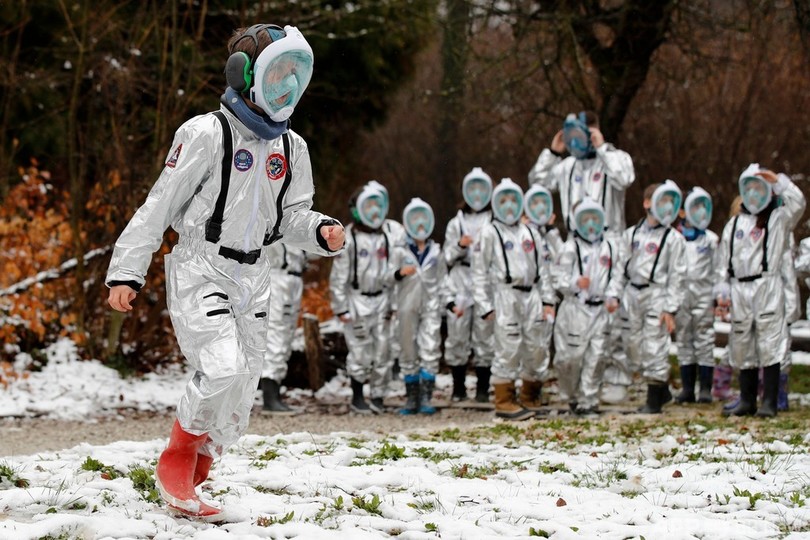 【4月3日 AFP】スイスの小学生レオ君(8)は、銀色に光るコスチューム姿でヘルメットを慎重にかぶり、そして仲間の宇宙飛行士の卵とともに「宇宙船」へと向かった──。