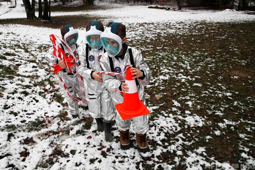 【4月3日 AFP】スイスの小学生レオ君(8)は、銀色に光るコスチューム姿でヘルメットを慎重にかぶり、そして仲間の宇宙飛行士の卵とともに「宇宙船」へと向かった──。