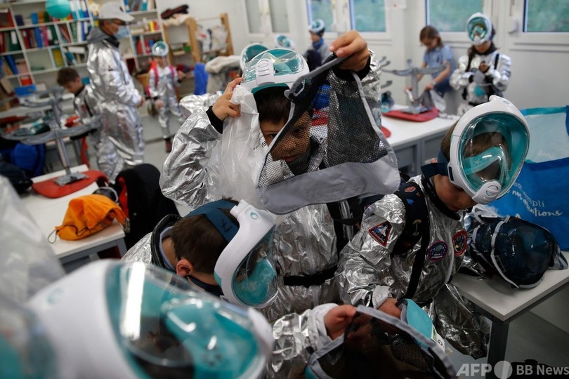 【4月3日 AFP】スイスの小学生レオ君(8)は、銀色に光るコスチューム姿でヘルメットを慎重にかぶり、そして仲間の宇宙飛行士の卵とともに「宇宙船」へと向かった──。