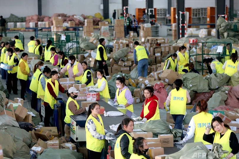 今年の業務量はわずか83日間で200億件を突破しており、2015年12月25日に初めて200億件を超えたのに比べ、9カ月早く、そして、2020年より45日間早まり、中国宅配便業界の発展における記録を更新しました。(c)CGTN Japanese/AFPBB News