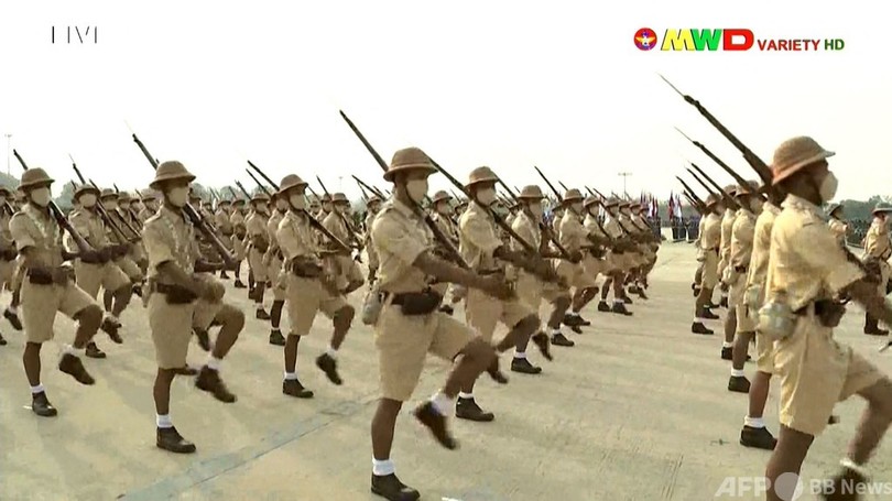 ミャンマー軍が軍事パレード、クーデターを正当化 デモ弾圧で19人死亡