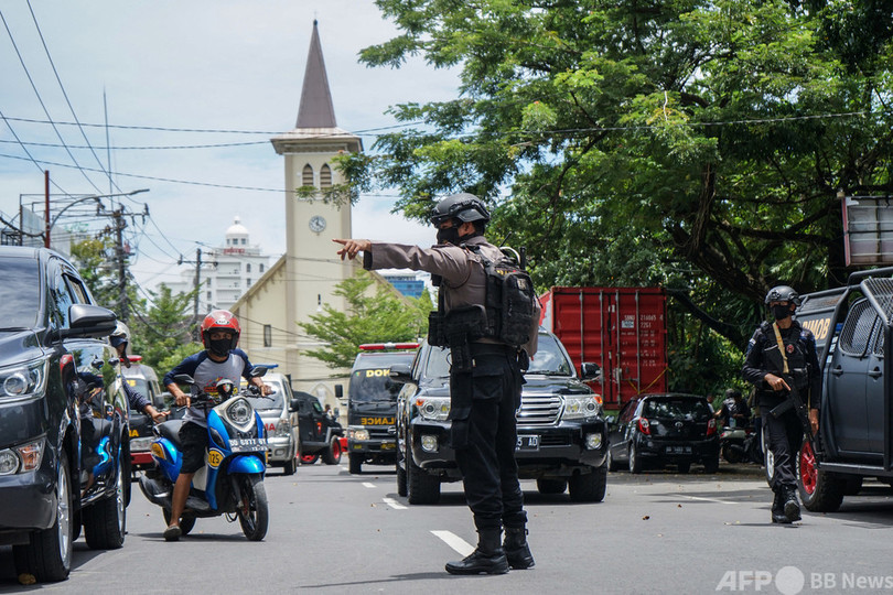 【3月28日 AFP】(更新、写真追加)インドネシア・マカッサル(Makassar)にあるキリスト教カトリック系の大聖堂前で28日、自爆攻撃があり、少なくとも14人が負傷した。地元警察によると、自爆犯2人のうち1人が現場で死亡、もう一人の生死は分かっていない。