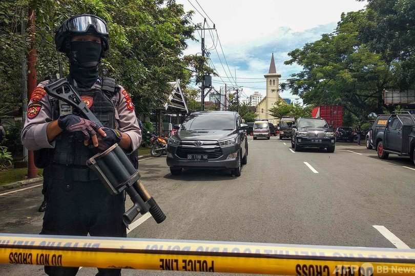 インドネシア国家警察は、「大聖堂の正門での爆発発生時、バイクに乗った2人組がいた。2人は敷地内に入ろうとしていた」と述べ、散らばった体の一部から自爆犯の身元を調べていると明らかにした。
