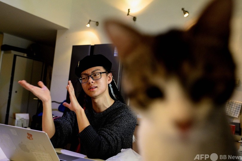 「一度ヴォーギングを知れば、そのカルチャー(そのもの)に触れないわけにはいきません」とホアホアさん。「(ヴォーギングを)さらに多くの人に知ってもらうなら、その背景にある歴史も知ってもらわなければなりません」 (c)AFP/Laurie CHEN