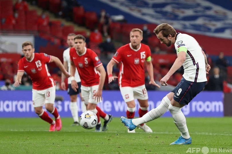 前半、ラヒーム・スターリング(Raheem Sterling)へのファウルで得たPKをハリー・ケイン(Harry Kane)が決めて先制したイングランドだったが、ジョン・ストーンズ(John Stones)のミスからヤクブ・モデル(Jakub Moder)の同点ゴールを許した。