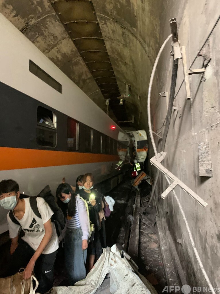 【4月2日 AFP】(写真追加、更新)台湾東部の花蓮(Hualien)近郊のトンネルで2日午前9時半(日本時間同10時半)ごろ、多数の乗客を乗せた列車が脱線した。台湾鉄路管理局(TRA)によると、少なくとも50人が死亡、146人が病院に搬送された。死者にはフランス人1人が、負傷者には日本人2人とマカオ住民1人がそれぞれ含まれる。台湾で起きた鉄道事故としてはここ数十年で最悪のものとなった。