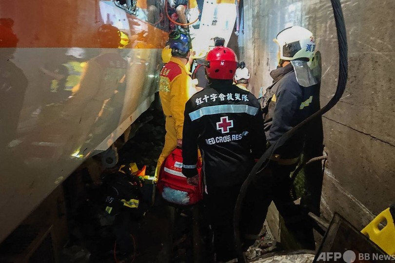【4月2日 AFP】(写真追加、更新)台湾東部の花蓮(Hualien)近郊のトンネルで2日午前9時半(日本時間同10時半)ごろ、多数の乗客を乗せた列車が脱線した。台湾鉄路管理局(TRA)によると、少なくとも50人が死亡、146人が病院に搬送された。死者にはフランス人1人が、負傷者には日本人2人とマカオ住民1人がそれぞれ含まれる。台湾で起きた鉄道事故としてはここ数十年で最悪のものとなった。