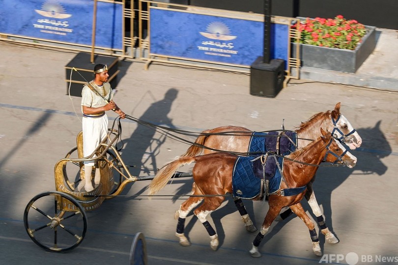 【4月4日 AFP】エジプトの首都カイロで3日、古代エジプト最強の女王を含む22人のファラオのミイラが、立派な装飾を施した車列によるパレードで移送された。