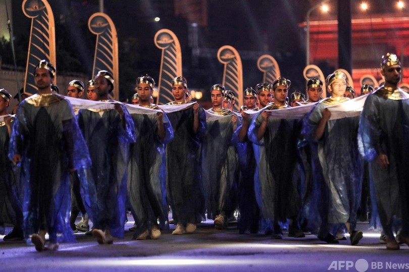【4月4日 AFP】エジプトの首都カイロで3日、古代エジプト最強の女王を含む22人のファラオのミイラが、立派な装飾を施した車列によるパレードで移送された。