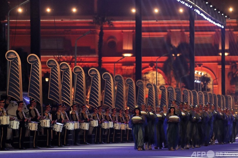 【4月4日 AFP】エジプトの首都カイロで3日、古代エジプト最強の女王を含む22人のファラオのミイラが、立派な装飾を施した車列によるパレードで移送された。