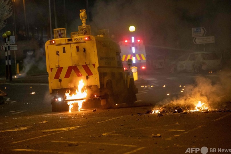 【4月5日 AFP】英領北アイルランドの警察は4日、プロテスタント系のデモ隊がベルファスト北郊で火炎瓶30本を警官らに投げ付け、車に放火する騒ぎがあったと発表した。