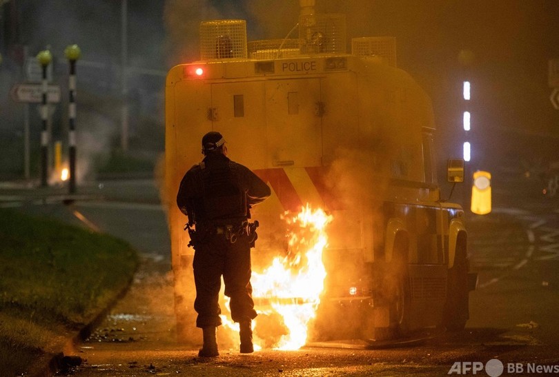 【4月5日 AFP】英領北アイルランドの警察は4日、プロテスタント系のデモ隊がベルファスト北郊で火炎瓶30本を警官らに投げ付け、車に放火する騒ぎがあったと発表した。
