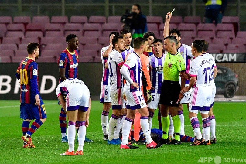 前日の試合でアトレティコがセビージャFC(Sevilla FC)に0-1で敗れる中、バルセロナはホームで手痛いドローに終わるかに思われたが、バジャドリードのオスカル・プラノ(Oscar Plano)が厳しい判定で78分に退場して数的優位になると、試合終了間際にデンベレが決勝点を奪った。