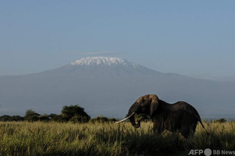 【4月18日 AFP】夜が明けると、ゾウの「トルストイ(Tolstoy)」がゆっくりと歩く姿が見える。地面に届くほど長い牙を持つトルストイは、アフリカ最高峰キリマンジャロ(Kilimanjaro)の麓で50年近く生きている。
