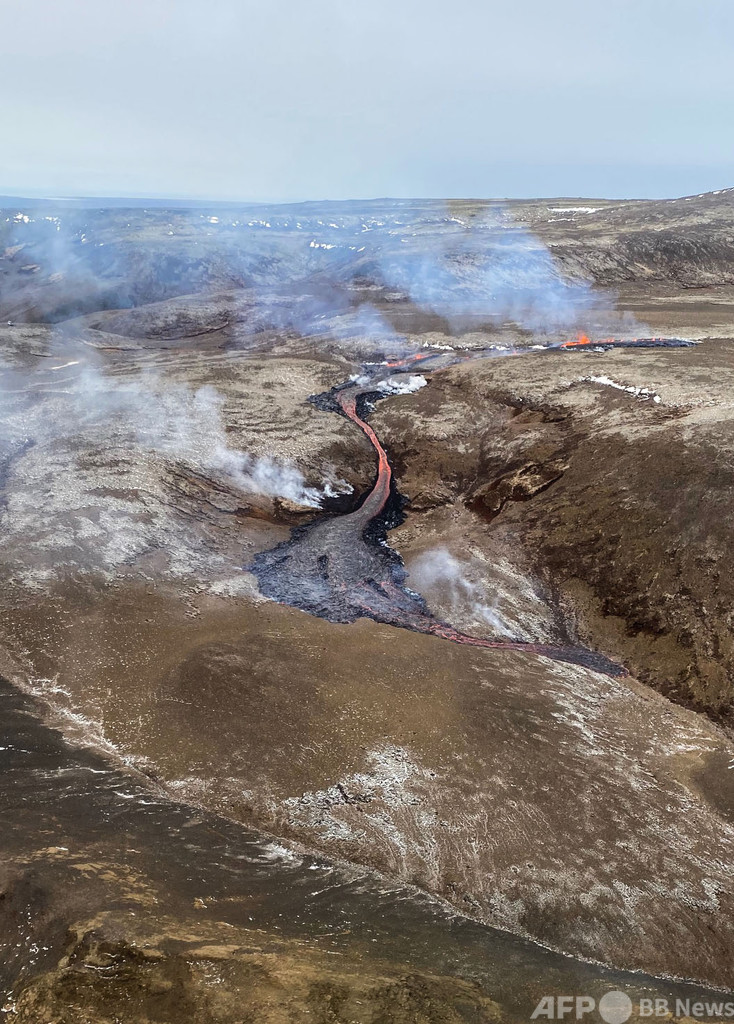 【4月6日 AFP】アイスランドで2週間前から続く噴火で5日、新しく開いた亀裂から溶岩が噴出し始めたことがテレビ映像で確認された。