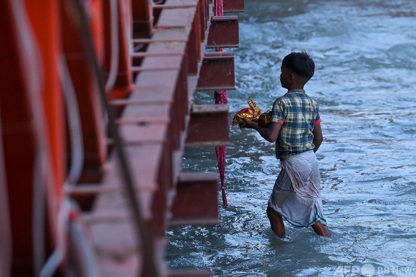 【4月13日 AFP】ヒンズー教の聖地、インド北部ハリドワール(Haridwar)では巡礼者が、魂が清められると信じガンジス(Ganges)川に身を沈める。その傍らで少年は、富を求めガンジス川に身を沈める。