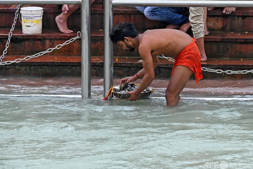 【4月13日 AFP】ヒンズー教の聖地、インド北部ハリドワール(Haridwar)では巡礼者が、魂が清められると信じガンジス(Ganges)川に身を沈める。その傍らで少年は、富を求めガンジス川に身を沈める。