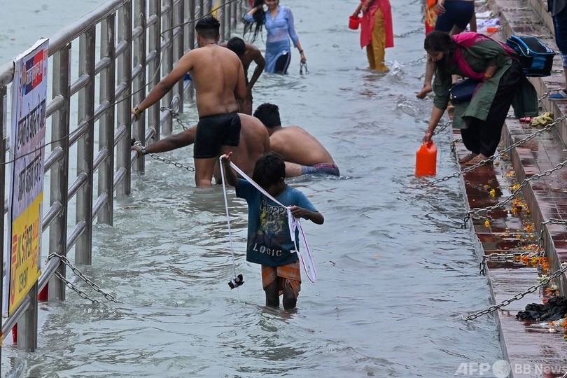 【4月13日 AFP】ヒンズー教の聖地、インド北部ハリドワール(Haridwar)では巡礼者が、魂が清められると信じガンジス(Ganges)川に身を沈める。その傍らで少年は、富を求めガンジス川に身を沈める。