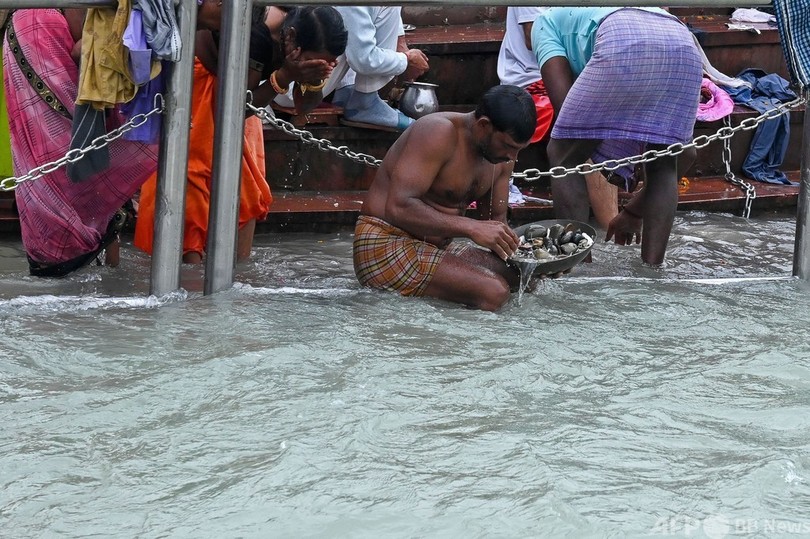 【4月13日 AFP】ヒンズー教の聖地、インド北部ハリドワール(Haridwar)では巡礼者が、魂が清められると信じガンジス(Ganges)川に身を沈める。その傍らで少年は、富を求めガンジス川に身を沈める。